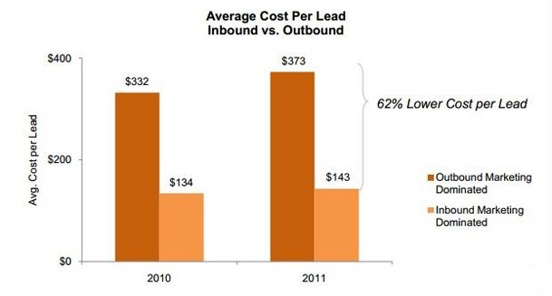 Inbound marketing-dominated organizations experience a cost per lead 62% lower than outbound marketing-dominated organizations.